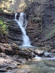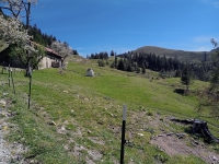 Vom Parkplatz unteres Jenbachtal wanderten wir entlang des ursprünglichen Baches Richtung Wasserfälle. Durch einige Murenabgänge in den vergangenen Jahren ist der Weg teilweise immer noch gesperrt und oft rutschig. Am Wasserfall ist der Weg mit Eisengittern ausgebaut und abgesichert. Oberhalb des Wasserfalls, direkt am Parkplatz oberes Jenbachtal biegt man links Richtung Hansenalm ab. Die Terrasse der Alm war gut besucht, so daß wir gleich Richtung Gipfel weiterzogen. Die Huberalm war allerdings noch geschlossen, es wurden nur bereitgestellte Getränke verkauft.