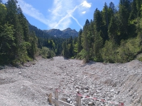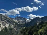 Am Sonntag war geplant über die Schöttelkarspitze nach Krün abzusteigen. Hier hatte sich der Kini einen Belvedere errichtet lassen. Dafür wurden von der Spitze des Berges 8 Meter abgesprengt. Viele Leute denken dieser Mann war verrückt, naja ganz sauber war er sicher nicht, aber er war kein Kriegstreiber. Die Wetterprognose von Louis dem Hüttenwirt sagte 'Regen in 20 Minuten- so dass wir uns entschieden auf direktem Weg nach Wallgau abzusteigen. Der direkte Weg führte am Fuss eines Wasserfalls vorbei zum Hundstall und von dort ca 100 Höhenmeter wieder hinauf zur Fischbachalm. Die Forststrasse hinunter konnten wir bei der Hälfte rechts auf einen sehr schönen Pfad direkt nach Wallgau abzweigen. Weiter unten wurden die Wege auch wieder breiter und kurz vorm Ort erreichten wir die Aualm die eine sehr willkommene Brotzeit und leckeren 🎂 anbot. Von hier erreichten wir in 20 Minuten unser Auto. Das Wetter hat gut mitgespielt, wir blieben trocken. Somit haben wir noch ein offenes Projekt für die Zukunft. Die Besteigung der Schöttelkar- und der Soiernspitze und trotzdem war es ein sehr schönes verlängertes Wochenende.