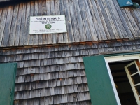 Getroffen haben wir uns diesmal, am 30.05. ziemlich zentral für Alle  in Fürstenried-West um in ein Auto umzusteigen. Lisa hatte uns angeboten die Parkgebühr zu sparen und uns von Wallgau nach Krün zum Wanderparkplatz zu chauffieren. Von dort wanderte unser Chef mit seinen 2- und 4-beinigen Damen los. Sehr schnell bogen Lisa und Izzi nach links zur Isar ab und wir zogen die Forststrasse Kilometer um Kilometer nach oben. Die Fischbachalm war noch im Winterschlaf, aber die Bänke luden trotzdem zu einer Rast ein. Da die Diener König Ludwigs vor Ihrem Herrn auf der Jagdhütte sein mussten, wurde von hier aus der Lakaiensteig angelegt. Dieser läuft teilweise etwas ausgesetzt und mit Drahtseil versichert direkt am Hang entlang. Hier hat man auch sehr schöne Blicke auf einen Wasserfall und nach Norden. Am Ende des Steigs erreichten wir nach 15 Minuten das Soiernhaus im Karwendel. Dort kann man nur Lager reservieren, diese waren ca 1 Meter breit und wir waren nur zu 7 im Zimmer.