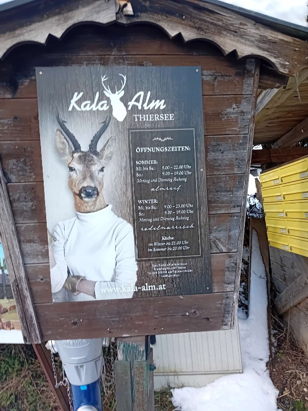 Letzte Woche habe ich auf der Homepage der Kala-Alm die Mitteilung, "die Schneerosen sind da" gelesen. Am Montag war allerdings die Wettervorhersage so katastrophal, daß wir über eine Absage nachdachten. Am Mittwoch besserte sich der Wetterbericht und die Kala-Alm meldete "Rodelbahn in Betrieb". So starteten wir heute mit einem vollen Auto über Kufstein nach Hinterthiersee zum Gasthof Schneeberg. Da wir die Parkgebühr von 4 € doppelt bezahlt hatten konnten wir das jedoch auch wieder stornieren. Hier oben war alles tief verschneit, die letzten Tage sind ca 30 cm Neuschnee gefallen.