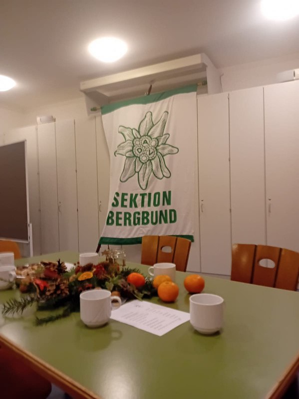 Die diesjährige Adventfeier fand im 2. OG, im Kolpingraum des Pfarrheimes Maria Schutz statt, da wir nur dort den Beamer benutzen konnten um eine Zusammenfassung unserer diesjährigen Aktivitäten anzusehen. Die Tische wurden bereits am Nachmittag von fleißigen Händen mit Naturmaterialien weihnachtlich dekoriert. Viele Bergbundler hatten bereits gebacken und brachten Ihre Weihnachtsplätzchen oder andere Spezialitäten mit. Unsere Fahne, die wir sonst nur bei den Kirchenumzügen präsentieren, dekorierte eine Wand. Über 50 Personen aus 4 Generationen lauschten den Gitarrenklängen aus 3 Jahrnunderten. Auch der Heilige Nikolaus kam vorbei, um uns zu loben und weiter zu motivieren. Langjährige Mitglieder wurden mit Medallien geehrt und 3 unterschiedliche Weihnachtsgeschichten wurden vorgetragen. Danach wurde noch mit Kinderpunsch angestoßen und eine frohe Weihnachtszeit gewünscht.