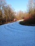 Heute Morgen, dem 21.Januar, trafen wir uns um 9 Uhr 50 an der S-Bahnstation Harthaus um mit der nächsten S-Bahn zur Fasanerie-Nord zu fahren. Da unsere Gruppe dort schon komplett war, entfiel unser sonst üblicher Zwischenstopp in Pasing und wir konnten nach einem Umstieg in die S1 am Hirschgarten weiterfahren zur Fasanerie-Nord. Dort angekommen, spazierten wir paralell zur Feldmochinger Strasse durch einen Schrebergarten hügelaufwärts zu dem Wanderweg entlang des Rangierbahnhofs stadteinwärts. Auf dem teils noch schneebedeckten Weg genossen wir das schöne Wetter und die Einsamkeit mitten in der Stadt.