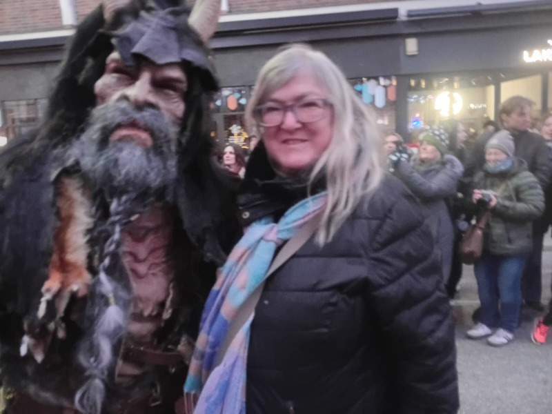 Gestern waren wieder die Perchten in München. Von der Polizei und Ordnungskräften warenwieder die Straßen abgesperrt worden, doch trotzdem verschmälerten neugierige Zuschauer die Straßen immer wieder, um möglichst viel zu sehen. Die Zuschauer standen machmal in bis zu acht Reihen hintereinander. Es herrschte vor dem Perchtenlauf und am Anfang ein sehr großes Gedränge. Dieses löste sich bei weiteren Perchtengruppen immer weiter auf, so daß wir anfangs stehend in der achten Reihe im Verlauf der Zeit immer weiter nach vorne geschoben wurden. Es waren wieder viele schöne Perchtengruppen da, aus dem Voralpenland und aus Österreich. Schon von weitem konnte man die Perchten hören, mit ihren Kuhglocken und Schellen.