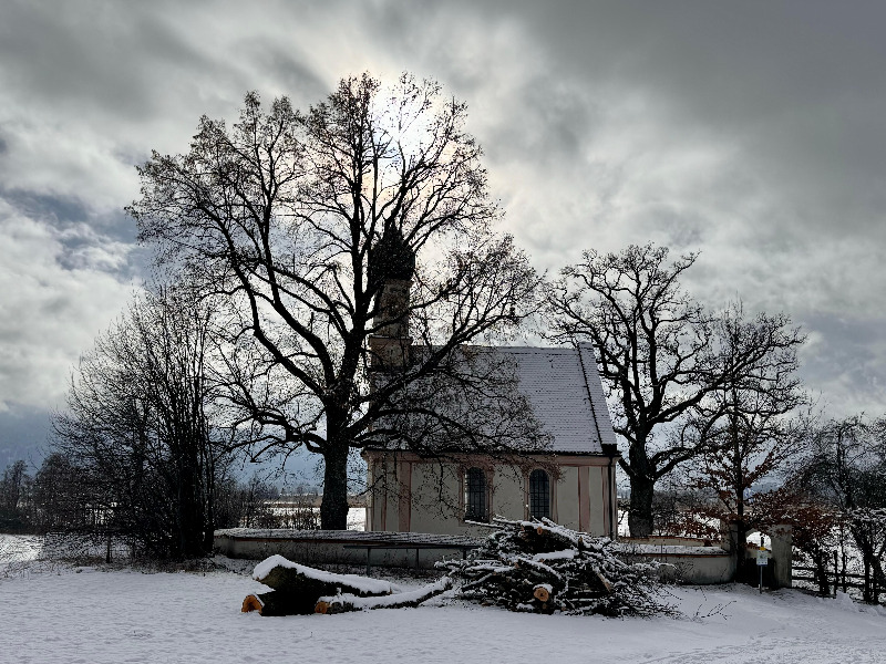 Zu Sechst starteten wir bei strahlendem Sonnenschein am 4.9.25 am Bahnhof Pasing und fuhren mit dem RB um 8:04 Uhr ab nach Bernried am Starnberger See, dort kamen wir nach ca. 1/2 Stunde an. Vom Bahnhof aus gingen wir zur Pestkapelle Hapberg, diese ist eingebettet in ein Wohngebiet aber mit Hilfe von Wegweisern zu finden. Weiter ging’s vorbei am Wasserturm, von da folgten wir fortan der Muschel des Jakobsweges.