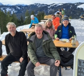 Im Sommer ziehen Sie weiter auf eine der Nachbaralmen mit mehr als 100 Stück Vieh und betreiben dort auch eine Käserei. Ein Teil unserer Truppe machte sich früher auf um noch auf das Riedberger Horn aufzusteigen, wir blieben noch in der Sonne sitzen. Der Gipfel konnte leider - aus Gründen - nicht bezwungen werden und wartet das nächste Mal auf uns. Wir wanderten auf und ab den Weg entlang in ca 1,5 Stunden wieder zurück und genossen noch die freundliche Selbstbedienung auf ein Abschlußgetränk. Inzwischen kamen auch die 2 Ausreißer wieder zurück. Auf der Rückfahrt war etwas mehr Verkehr aber wir kamen trotzdem schnell voran. Es war ein erfüllter Tag, mit Sonnenschein, Schnee und guter Laune. Unabhängig davon maunzt morgen früh sicher der Muskelkater, jedenfalls bei mir