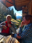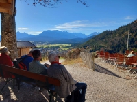 Nach der Querung der B11 begann der kurze Aufstieg zur Maxhütte, die leider bereits geschlossen war. Während der kurzen Trinkpause vor der Maxhütte konnte man nochmal die Aussicht genießen, die von der Soierngruppe bis zur Alpspitze reichte. Danach führte der Weg durch einen schönen Mischwald, vorbei an einem kleinen Hochmoor hinunter zur Mautstraße nach Vorderriss. Um Halb zwei erreichten wir die Golfalm und freuten uns auf gutes Essen. Nach einem guten Mittagessen sind wir über den Golfplatz zum Isarsteg gegangen. Von dort war es nur noch ein kurzer Weg zurück nach Wallgau.
