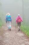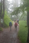 ging der Weg vorbei nach Niedernfels zur Talstation der Hochplattenbahn. Dort brachte uns der gemütliche Sessellift hinauf zur Staffnalm. Oben angekommen umfing uns der Nebel, wir konnten kaum das Gasthaus erkennen. Eine kleine Trinkpause, dann schlugen wir den Weg zum Bergwald ein. Still , beinahe mystisch, empfing uns der Wald. Kühle, angenehme feuchte Luft ließ die Wanderung