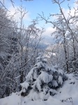 Getroffen hatten wir uns um 9:15 am Kirchplatz um von dort weiter durch Bayrischzell, die Sudelfeldstraße hoch zum Waldparkplatz am Tatzelwurm zu fahren. Erst dort stellten wir fest, daß das nicht der Wanderparkplatz Tatzelwurm ist und starteten unseren treuen Begleiter erneut. Die 3 € Parkgebühr hatten wir schon beim 1. Parkplatz bezahlt. Unser Tourennavi leitete uns wieder zurück zur Hauptstraße und dort am Wald entlang zum eigentlichen Asten-Parkplatz. Zwischenzeitlich wurde die Sonne immer wieder von Hochnebel verdeckt. Der Weg schlängelt sich eine Forststraße entlang durch den Wald. Obwohl Samstag ist sind wir beim Aufstieg nur 4 Personen begegnet. Wir hatten Glück, daß der Waldarbeiter die eigentlich gesperrte Straße für uns freigab und wir nach knapp 1 3/4 Stunden am höchsten Punkt unserer Wanderung den Wald verlassen konnten.