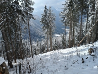 Leicht abwärts querten wir noch eine Weide und erreichten nach 2 Stunden die Hohen Asten. Die warmen Stuben waren allerdings ziemlich voll und wir hatten schon wieder Glück noch einen freien Platz am Kachelofen zu ergattern. Wie schon seit Jahrhunderten wurden wir bestens bewirtet. Die Spinatknödel waren sagenhaft und erst die Florentiner Birnentorte und der Käsekuchen der krönende Abschluß. Danach mussten wir uns wieder auf den Rückweg machen, erst die Almweide hinauf und dann den verschneiten Weg wieder hinunter. Das Wetter hat wieder gut mitgespielt und es war ein toller Tag.