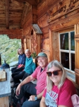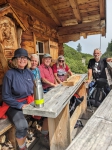 Getroffen hatten wir uns wieder mal am U-Bahnhof Fürstenried West um mit 2 Fahrzeugen ins Zillertal zu fahren. Der Wetterbericht versprach uns 4 Tage Dauerregen. Trotzdem parkten wir unsere Autos für 18 € direkt vor der Mautstation um dann für weitere 5,5 € pro Person mit dem Bus zum Schlehgeisspeicher hinaufzufahren. Von dort ging es vorbei an der Dominikushütte über einige kleine Stege und moorigen Untergrund, der mit Felsblöcken und Balken überbrückt war, hinauf zur Friesenbergalm Nach einer Stunde hatten wir die Hälfte der avisierten Zeit erreicht und legten dort eine Pause ein. Beim Aufstieg hatte Petrus ein Einsehen mit uns und schickte sogar ein paar Sonnenstrahlen.