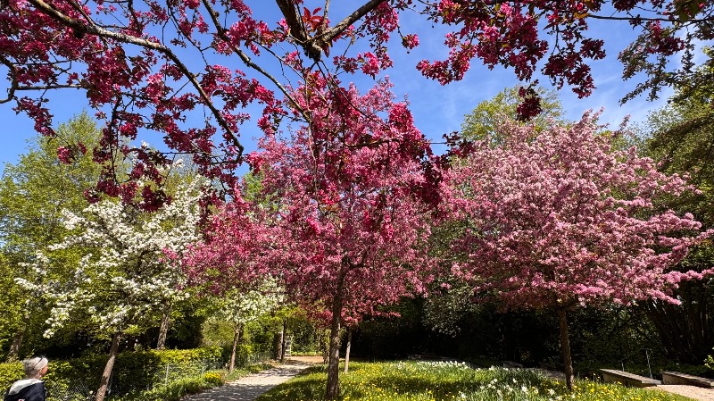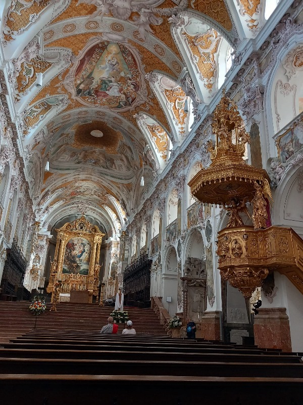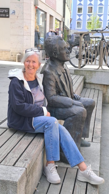 Beim Aufenthalt auf dem Balkon hatten wir einen Überblick über die Freisinger Altstadt. Im Dom findet man alle Baustile der letzen Jahrhunderte, von der romanischen Krypta bis zu den Stuckfresken der Asambrüder. Beeindruckend waren auch die kunstvollen Gitter vor den Seitenaltären, die alle vergoldet sind. Wir schlenderten den Domberg hinab zum Hauptplatz und weiter Richtung Weihenstephan. Da der Roider Jackl ein waschechter Freisinger war, haben sie Ihm einen Brunnendenkmal mit der Aufschrift: "Jetzt muaßt aufhörn zum Singa, sonst wer I no berühmt, und kriag a a Denkmal, wos Wasser rausrinnt." aufgestellt. Direkt an der Moosach sitzt der Karl Obermayr, bekannt für seine Rolle als Kopfeck Manni im Monaco Franze und vieler weiterer Film- und Theaterstücke. Unser weiterer Weg führte uns den Weihenstephaner Berg hinauf, vorbei an der Korbiniansquelle zur Brauereiwirtschaft. Der Biergarten war gut besucht, das Essen sehr abwechslungsreicht und nicht überzogen teuer. Angeboten wurde auch ein Bierbrettl, 3 kleine 0,1 L. Gläschen mit 3 verschiedenen Weihenstephaner Bieren. Durch den Diekmanngarten unter blühenden Zieräpfelbäumen spazierten wir zurück zur S-Bahn. Der Pakt mit Petrus hat gehalten - wir hatten den ganzen Tag strahlenden Sonnenschein und es war schön warm.