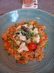 Ein anderer Tag, Aschermittwoch, eine andere Uhrzeit, 11 Uhr, aber gleicher Treffpunkt am Pasinger Bahnhof vorm Richart starteten wir unseren Seeausflug zum Ammersee. Die S-Bahn fuhr über Germering, so daß ich dort fast pünktlich, nur die fast übliche Verspätung von 5 Minuten, zusteigen konnte. Vom Bahnhof Herrsching ging es dann über den Kurpark immer in südlicher Richtung die Uferpromenade entlang. zu unserer Empfehlung, dem Restaurant Seespitz. Hier konnten wir auch noch das Fünfte Mitglied unserer Essensgruppe begrüßen. Wir wählten alle das  Mittagsmenü, 4x Fischcassoulet und 1x Gemüseravioli. Der Superblick über die Herrschinger Bucht verkürzte die Wartezeit bis das Essen kam. Leider mussten wir 2 Fische reklamieren, da das Essen bereits kalt war.