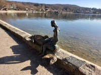 Nochmals erwärmt konnten wir uns dann auch dem Genuss hingeben. Als Entschuldigung gab es dann einen Espresso aufs Haus. Nachdem das Wetter so traumhaft war entschlossen wir uns die Herrschinger Bucht zu umrunden und uns noch eine Eiskugel in der Waffel zu gönnen. An der kleinen Seejungfrau und dem Spielplatz vorbei bewunderten wir die schönen alten und neuen Häuser mit Seeblick. Später genossen wir auf einer Bank noch die wärmenden Sonnenstrahlen bevor wir uns gegen 5 Uhr wieder in die S-Bahn nach Hause setzten.
