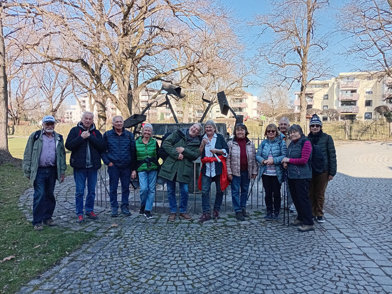 Gestern war es wieder soweit, wir trafen uns wieder um 10 Uhr 15 vorm Rischart am Pasinger Bahnhof. Wir, das waren acht wissbegierige Wanderer, die an diesem noch nebligem und kalten Morgen zum Dachauer Bahnhof gefahren sind. Dort wurden wir bereits von drei weiteren Mitwanderern erwartet. Gemeinsam machten wir uns auf den Fußmarsch Richtung Altstadt und Schloß. Während wir den Karlsberg zum Zollhäusl (jetzt Touristeninformation) zum Bild Nummer 18 hinaufgingen, erreichte uns keuchend ein Nachzügler, der