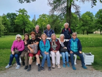 Kurfürst Maximilian regierte Bayern 53 Jahre lang, auch während des 30jährigen Krieges. Im alten Schloß starb auch dessen Sohn Ferdinand Maria, der dieses oft als Sommerresidenz benutzte. Von hier aus spazierten wir weiter am neuen Schloss vorbei in den schönen Park. Das neue Schloss Schleißheim wurde im Auftrag von Kurfürst Max Emmanuel, dem blauen Kurfürst, dem Befreier von Belgrad, im Stil von Schloß Schönbrunn oder Versailles errichtet, weil dieser meinte, er könne Kaiserwürden und das spanische Erbe erlangen. Der Park mit sehr altem Baumbestand ist streng geometrisch, im französischen Stil, mit Heckenirrgärten angelegt. Wir schlenderten durch diese Hecken zum südlichen Pavillion, wo auch die Renatuskapelle mit einem sehr schönen Deckengemälde untergebracht ist. Von hier aus gingen wir weiter nach Schloß Lustheim, wo man eine Porzellanausstellung besuchen kann. Auf unserem weiteren Weg kamen wir dann auch zum nördlichen Pavillion mit dem schönen Pferdestall. Dort konnten bis zu 16 Pferde unter herrlichen Deckengemälden eingestellt werden. Wenn wir den Weg hinter Schloß Lustheim weitergegangen wären, wären wir zum Restaurant Kurfürst gekommen. Doch leider öffnet dieses werktags erst ab 17 Uhr. So wanderten wir den Hauptweg am Durchblick zum neuen Schloß wieder zurück, zur Schloßwirtschaft mit Biergarten. Dort konnten wir auch an einem großen Tisch, im Restaurant, alle gemeinsam essen. Nach einem opulenten Mahl schlenderten wir anschließend wieder zum Bahnhof zurück. Es war ein sehr schöner Ausflug.