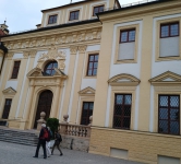Heute Morgen trafen wir uns wieder um 10 Uhr 15 im Pasinger Bahnhof, um mit der nächsten S-Bahn mit Umstieg am Hirschgarten nach Oberschleißheim zu fahren. Dort wurde unsere Gruppe durch zwei weitere Mitwanderer ergänzt, so daß wir jetzt insgesamt 11 Personen waren. Leider war es nicht mehr so schön sonnig und warm, wie die letzten Tage, und es wehte ein stärkerer Wind, aber es blieb trocken und ab und zu lugte die Sonne heraus. Gut gelaunt wanderten wir einen schmalen Weg entlang zum alten Schloß, in das Kurfürst Maximilian seinen Vater Wilhelm V nach dessen Abdankung verbannt hatte.