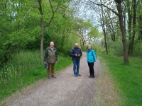 Heute, dem 24.04 trafen wir uns wieder in Pasing, um von dort gemeinsam weiter nach Unterföhring zu fahren. Leider entfiel auf unserer S-Bahnlinie der nächste Zug und Christine und ich kamen verspätet zum Treffpunkt, wo wir schon von unserer sechs Mitwanderern erwartet wurden. Nachdem wir jetzt vollzählig waren, konnten wir mit der nächsten S8 nach Unterföhring weiterfahren. Dort angekommen, folgten wir dem Heinrich-Hildebrandt-Weg und spazierten Richtung Feringasee, den wir auch nach einer kurzen Wegstrecke erreichten. Hier folgten wir dem westlichen Uferweg zur Autobahn. Davor bogen wir aber bei einer Kleingartenanlage ab und wanderten weiter an einem Wertstoffhof vorbei auf den Isarkanal zu.