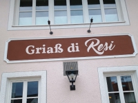 Diesen überquerten wir auf einer Fußgängerbrücke und konnten dann im weiteren Verlauf die Autobahn in einer Unterführung passieren. Dann gingen wir am Damm des Isarkanals Richtung Speichersee entlang. Von fern konnte man schon über die Felder den Ismaninger Wasserturm erkennen. Nach kurzer Zeit verliessen wir den Dammweg und gingen weiter über Feldwege Richtung Ismaning. In einem kleinen Wäldchen an der Bahnlinie konnte man Turnübungen machen, aber wir marschierten daran vorbei in die Ortschaft hinein. Nachdem wir noch an einem Spielplatz und einem kleinem See vorbei waren, folgten wir dem Wegweiser zum Ismaninger Schloß und Rathaus. Dort nicht weit entfernt, war auch unser Speiselokal "Griaß di Resi", wo bereits ein Tisch reserviert war und wir erwartet wurden. Gestärkt mit Speis und Trank marschierten wir danach zum Ismaninger Bahnhof. Wir hatten Glück mit dem Wetter. Es fiel kein einziger Regentropfen aus dem grauen Himmel und es war eine schöne Wanderung.