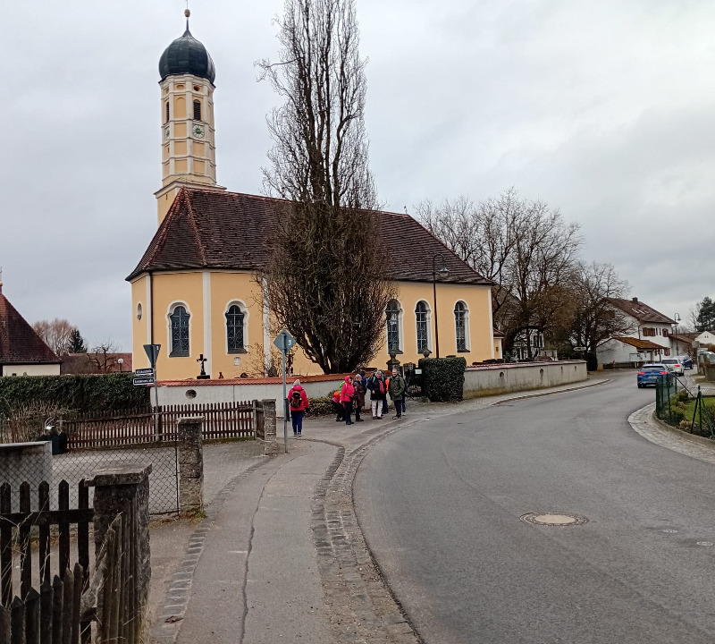 Zu Sechst starteten wir bei strahlendem Sonnenschein am 4.9.25 am Bahnhof Pasing und fuhren mit dem RB um 8:04 Uhr ab nach Bernried am Starnberger See, dort kamen wir nach ca. 1/2 Stunde an. Vom Bahnhof aus gingen wir zur Pestkapelle Hapberg, diese ist eingebettet in ein Wohngebiet aber mit Hilfe von Wegweisern zu finden. Weiter ging’s vorbei am Wasserturm, von da folgten wir fortan der Muschel des Jakobsweges.