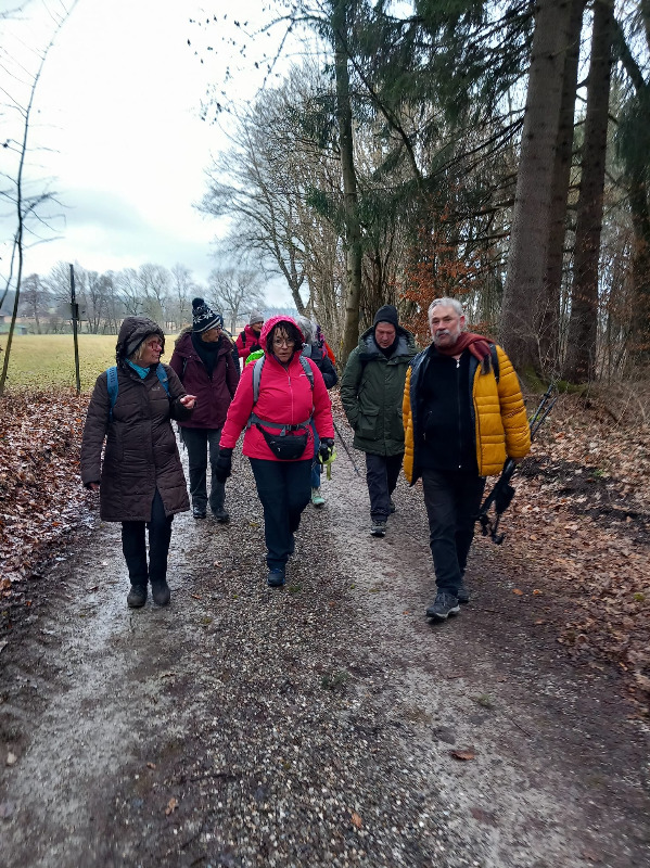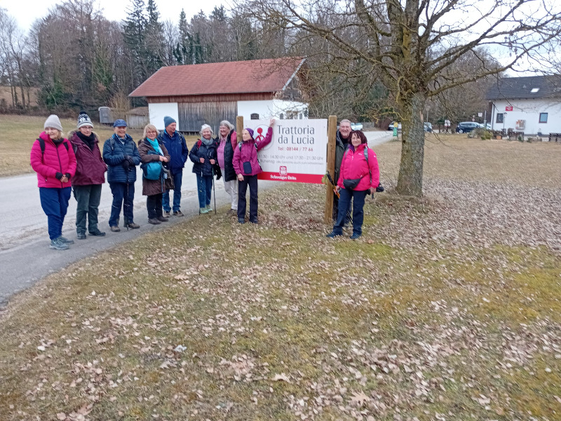 Das Restaurant erinnert durch die Speisekarte an "gute alte italienische" Küche, wie wir Sie von früher gewohnt waren.  Nach dem Espresso wurden die Storchennester von Kottgeisering bewundert.  1563 wurde die Valentinskapelle geweiht.  Vorbei am alten Rathaus ging es weiter ins Moos hinein. Leider begann dann auch der vorhergesagte  Regen. Durch das kleine Wäldchen blieben wir vorerst noch trocken. Wir überquerten die Hauptstraße und gingen durch Zankenhausen weiter über die Felder nach Türkenfeld hinein. Es wurde immer kälter und nässer und alle waren froh als wir dann den Bahnhof Türkenfeld erreichten. Die S-Bahn kam dann auch innerhalb von 10 Minuten und brachte uns wieder zurück zum Ausgangspunkt.